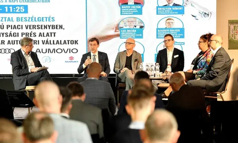 A Techtogether+ három az egyben rendezvényének Hatékonyság és felelős működés a verseny szorításában című konferenciáján az ipar legégetőbb, legizgalmasabb és leginkább húsba vágó témái kerültek elő a hazai járműipar kiemelkedő szereplői által megvitatva. A beszélgetésen Les Zoltán, az Audi Hungaria Zrt. járműgyártásért felelős igazgatósági tagja, Dapsy Zoltán, az AUMOVIO Budapest ügyvezető igazgatója és gyárigazgatója, Krisztián Róbert, a Magyar Suzuki Zrt. vezérigazgató-helyettese, Szilágyi Balázs a CATL Hungary közügyekért felelős vezetője, valamint dr. Pata Ildikó, a Pata Ipari Kft. tulajdonos ügyvezetője vettek részt, míg a moderátor a Magyar Gépjárműipari Egyesület ügyvezető főtitkára, Kilián Csaba volt.